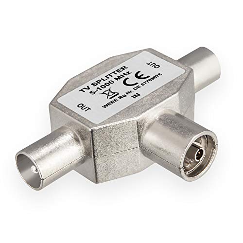 Distributore TV HB-DIGITAL per cavo DVB-C + ricezione terrestre Splitter TV DVB-T2 Adattatore T a 2 vie alloggiamento metallico Antenna TV 1x ingresso presa IEC femmina 2X uscita spina IEC maschio