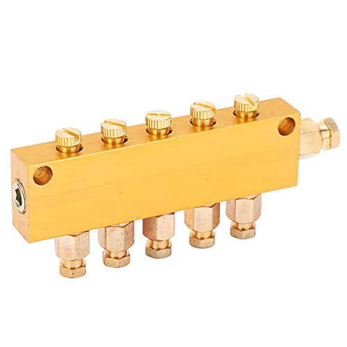 Distributore Olio in Ottone 5/6 Vie Olio Lubrificante Regolabile Distributore a Pistone Valore Blocco Collettore per Sistema di Lubrificazione Centralizzato(1 in 5 out)