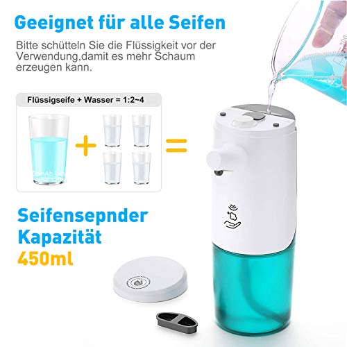 Distributore di sapone automatico da 450 ml, schiumogeno con USB, ricaricabile, impermeabile con sensore, dispenser elettrico, 3 quantità di schiuma regolabile