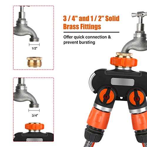 Distributore a 2 Vie, Splitter Tubo da Giardino Regolabile e Bloccabile con Valvola Separata per Rubinetto Filo da Giardino 3/4'' e 1/2", Irrigazione, Pulizia, Vita Domestica