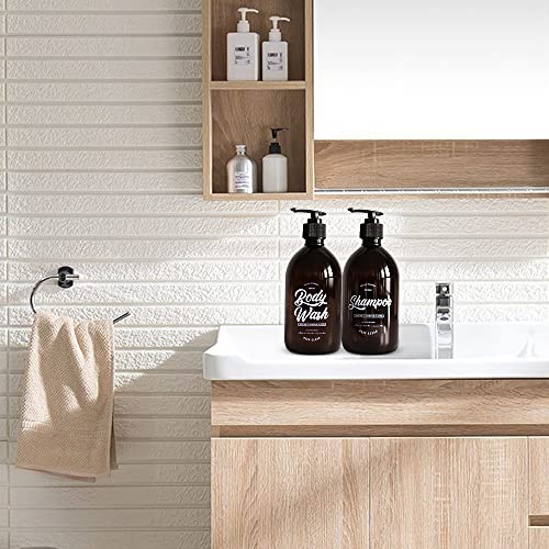 Set di 2 distributori di sapone in plastica marrone da 500 ml, dispenser per pompa, shampoo, dispenser per sapone da cucina (shampoo e body wash)