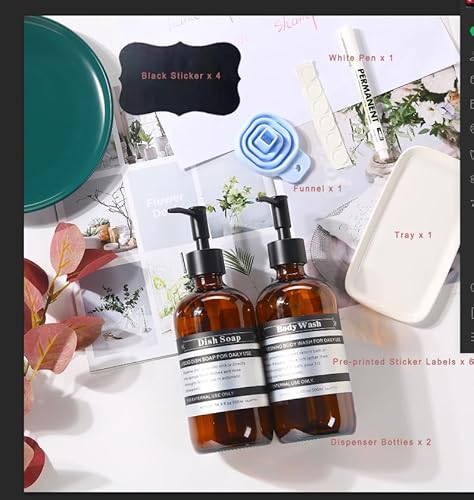 Set all-inclusive: questo prodotto è un set completo che include due dispenser di sapone in plastica ricaricabili con pompa, un vassoio in ceramica per una maggiore eleganza, sei etichette impermeabili per una facile identificazione di diversi saponi (bagnoschiuma, sapone per piatti, sapone per le mani, lozione, shampoo e balsamo), quattro etichette impermeabili nere vuote aggiuntive e una penna.