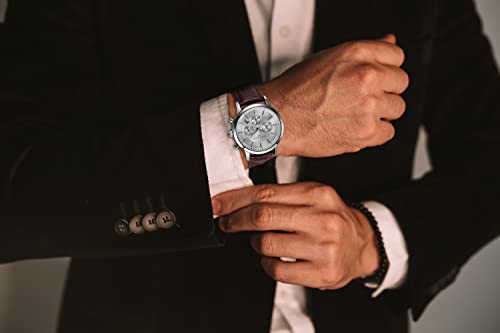 DISTRICT, London Executive Edition, orologio maschile di lusso, con sotto quadrante al quarzo e display analogico, cinturino in pelle, design classico ed elegante, orologio impermeabile con cassa in acciaio inossidabile