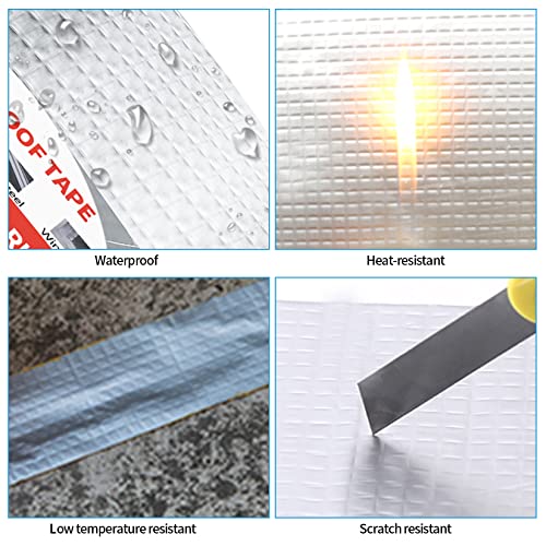 Materiale squisito: il nastro impermeabile è realizzato in materiale a rete di alluminio butilico di alta qualità, impermeabile, resistente al calore, al freddo, ai graffi, appiccicosità più forte, sicuro e inodore, resistente ai raggi UV, anti-invecchiamento, garantendo un migliore effetto sigillante e maggiore durata.