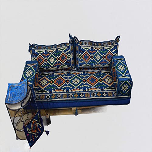 DIVANO ETNICO CON FRANGE SFODERABILE BLU ANATOLIAN BRINDA SET 5 PEZZI