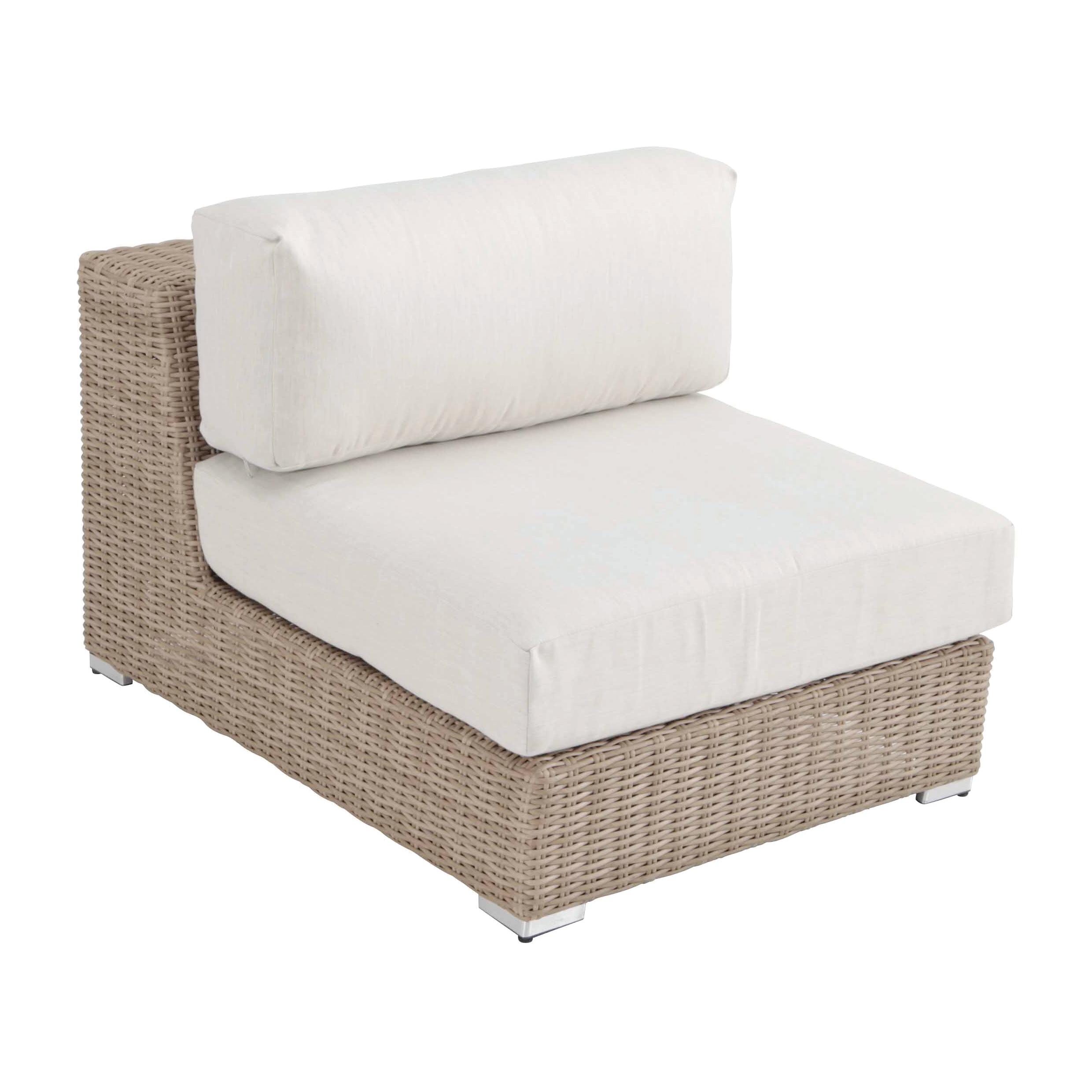 Struttura in alluminio, cuscini in poliestere color beige. Dim. L 109 x P 83 x H 66 cm. Resistente alla ruggine ed alle deformazioni dovute agli agenti atmosferici. Confortevole e pratico, grazie ai cuscini inclusi, sfoderabili per garantire facilità di manutenzione