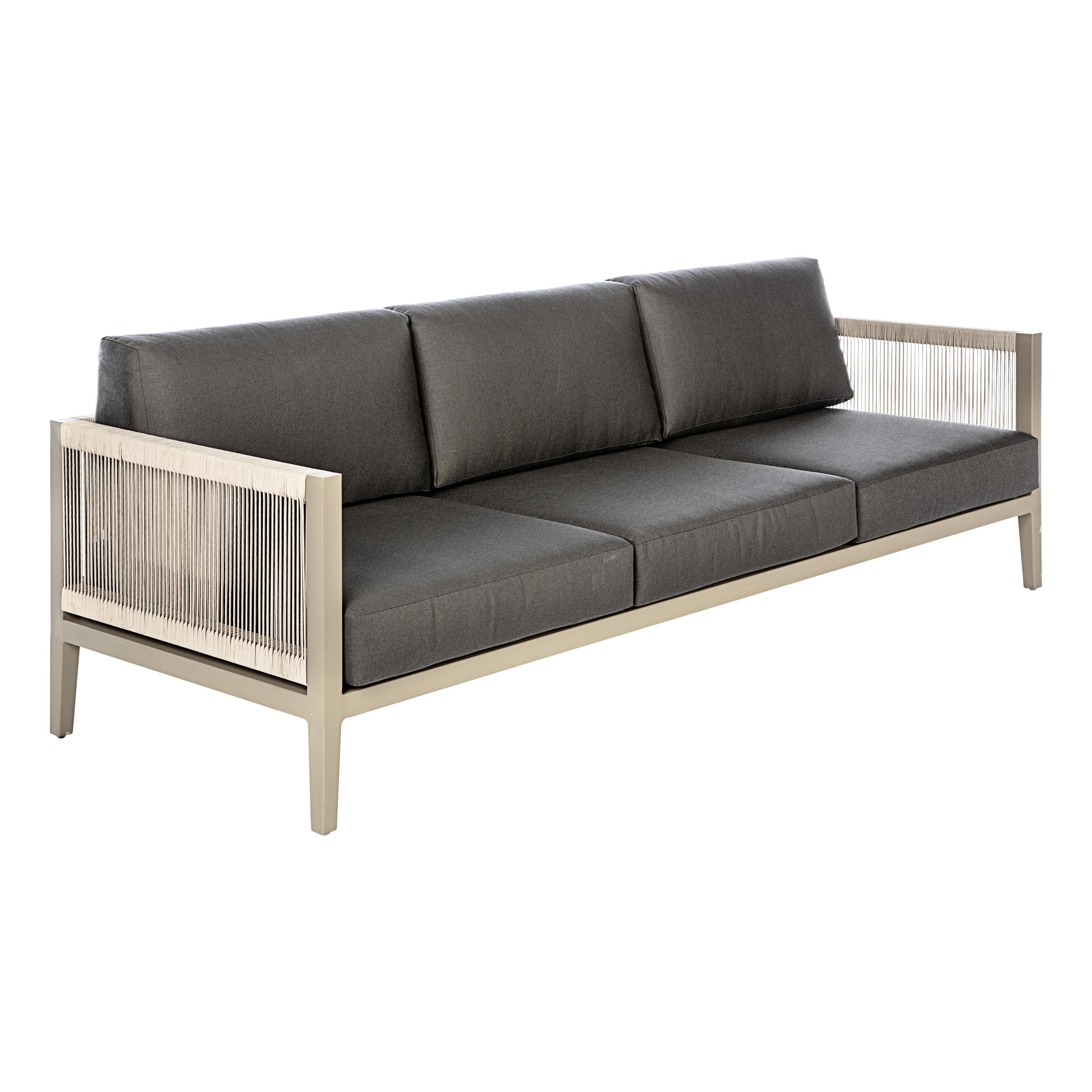 Struttura in alluminio, cuscini in poliestere color grigio. Dim. L 232.5 x P 82.5 x H 65 cm. Insieme ad altri elementi della stessa serie permette di creare la combinazione più adatta a qualsiasi esigenza