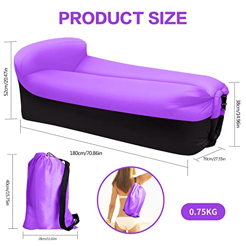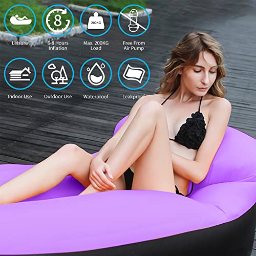 Divano Gonfiabile, Divano Gonfiabile e Sedia ad Aria con Cuscini, Divano Ad Aria Impermeabile con Pacchetto Portatile per Feste in Campeggio, Vacanze, Escursioni, Piscina e Spiaggia (Viola+Nero)