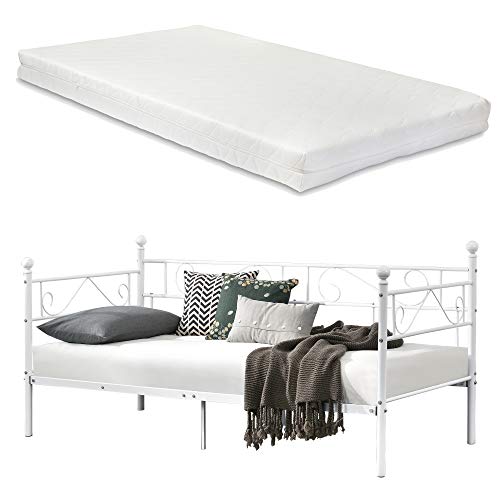 En.casa - Divano Letto Metallo con Materasso 200 x 100 cm Sofa Singolo Design Incluso Rete a Doghe Bianco