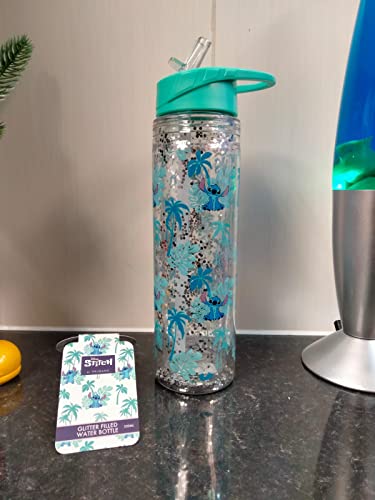 Divas World Lilo & Stitch Glitter riempito con cannuccia bottiglia d'acqua per bere sport, viaggi, scuola, bambini, riutilizzabile, 550 ml, leggero, palestra, ciclismo, picnic, yoga, ottimo regalo