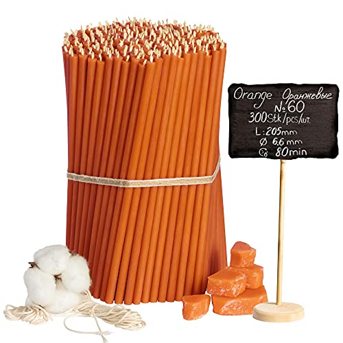 Diveevo - Candele in cera d'api, 300 pezzi, lunghezza 20,5 cm, diametro 6,6 mm, durata 80 min, naturale, senza gocciolamento, senza fumo