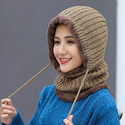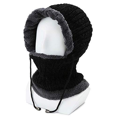 Diveimai - Passamontagna invernale da donna, lavorato a maglia, con cappuccio, foderato in peluche, per sci, sciarpa