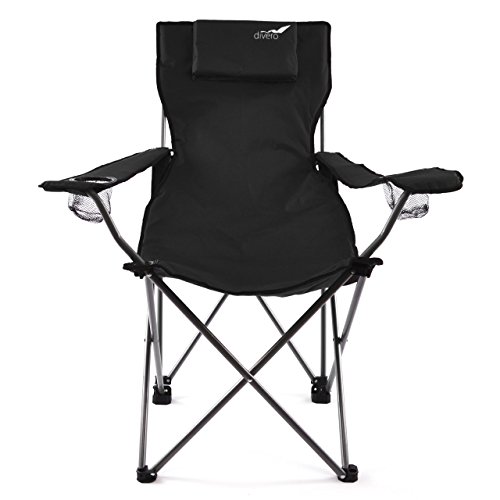 Divero Sedia Pieghevole da Campeggio Sedia da Pesca Nero Testa Cuscino Bevande Robusto Fino a 130 kg