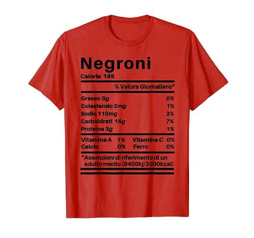 Divertente Etichetta Nutrizionale Ingredienti Negroni Maglietta