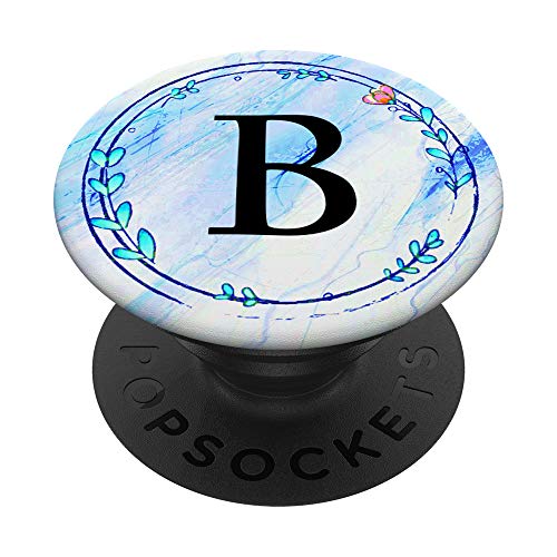 Divertente supporto per cellulare pop out, lettera B con fiore rosa e verde acqua blu PopSockets PopGrip Intercambiabile