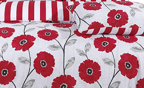 Divine Textiles Easy Care - Set copripiumino reversibile con 2 federe (fiori rossi, 200 x 200)
