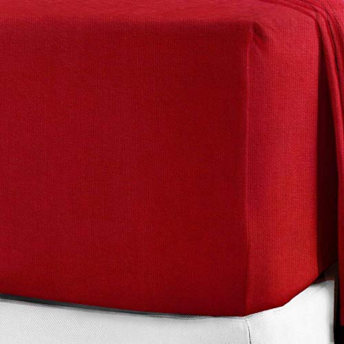Divine Textiles, Lenzuolo con angoli elasticizzati e molto profondi da 40 cm, in 100% flanella di cotone pettinato, disponibile in 14 colori, Rosso, Doppio