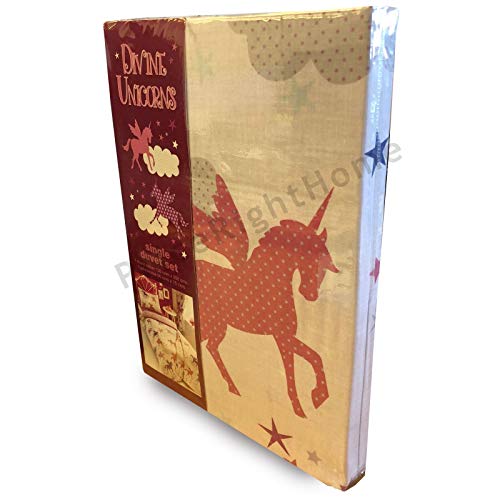 Kidz Club Divine Unicorn Set copripiumino e federa per bambina, reversibile, colore: rosa/bianco, poliestere-cotone, singolo