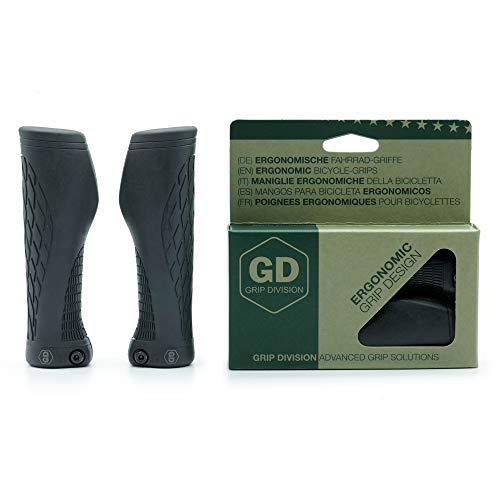 GD Grip Division ® Manopole per bicicletta ergonomiche con blocco Lock-On - Manopole antiscivolo morbide e confortevoli per una presa sicura, nero