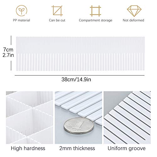 Divisori per Cassette, Separatori per Cassette, Divisorio per Cassetti Griglia Regolabile Fai-da-Te in Plastica da 10 Pezzi per Riporre e Ordinare (Bianco, Altezza 7 cm)