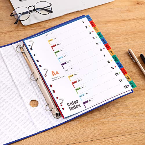 Divisori per documenti, formato A4, con linguette mensili (5 pezzi) in plastica A4 divisori per oggetti, multicolore mensilmente per gennaio-dicembre
