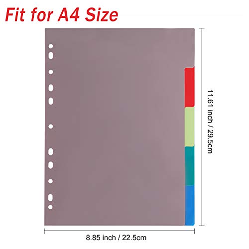 La confezione include 5 divisori formato A4 (5 parti). Dimensioni: 22,5 x 30 cm. Si adatta alla maggior parte dei documenti formato A4 o lettera. Per mantenere i tuoi raccoglitori ben organizzati e presentabili.