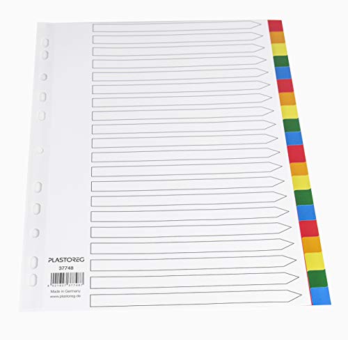 Materiale: Divisori in plastica PP colorata riciclabile e colorata Copertina 120 my / 0,12 mm in carta spessa 120 g in bianco