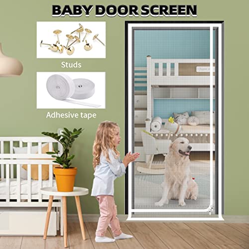 Facile da installare e rimuovere e pulire: rete dello schermo non sono necessari attrezzi, basta staccare l'adesivo dalle strisce del gancio e del passante e applicarlo al telaio della porta, è possibile spingere i perni per fissare lo schermo al suo posto, inoltre può essere rimosso facilmente senza danneggiare il telaio della porta.
