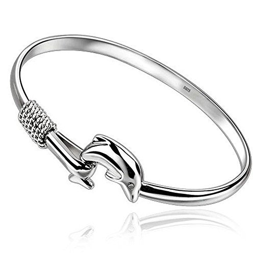 Braccialetto rigido da donna in argento Sterling 925 massiccio, con delfino, idea regalo