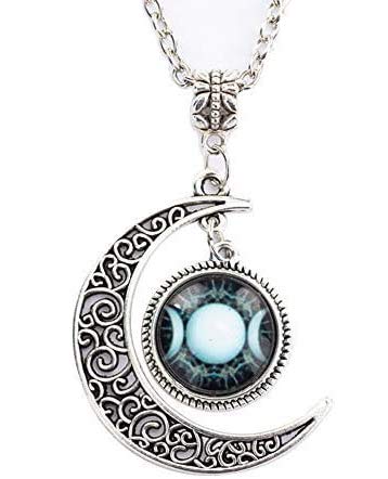 Collana con ciondolo a forma di luna piena con immagine di vetro e tripla, gioielli Wiccan, gioielli della dea della luna, ciondolo per collana Wiccan (5)