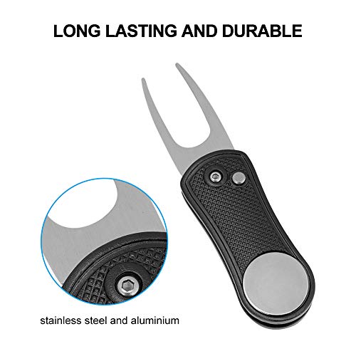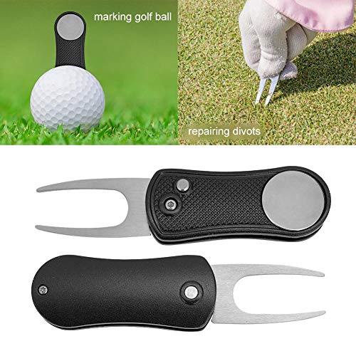 Golf Divot Tool, Pieghevole Golf Pitch Repair Tool Golf Pitch Fork Golf On-Course Training Accessorio(Nero) Roba Da Golf