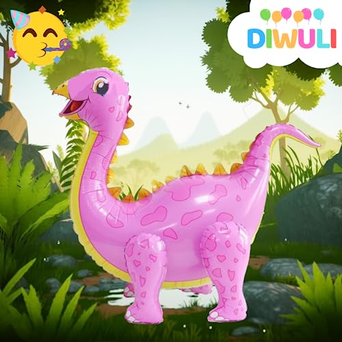 DIWULI Dino Balloon XXL Pink, Simpatico Palloncino in Foil a Collo Lungo a Forma di Dinosauro per Bambini, Compleanno Ragazzo, Ragazza, Festa a Tema, Festa dei Dinosauri, Decorazione