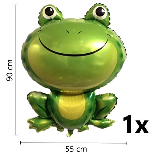 GRANDE SET DA 6 PEZZI: 1x palloncino a forma di numero 3 XL verde (circa 70 cm, non vola con l'elio), 1x palloncino a forma di principe rana XXL (circa 90 x 55 cm), 2x palloncino 'Happy Birthday Prince' blu (circa 45 cm), 2x palloncino a forma di stella verde. (circa 45 cm)