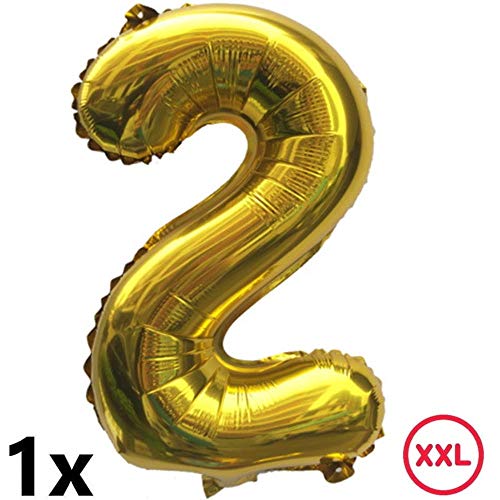 DIWULI, set di palloncini grandi da cantiere, palloncino XXL numero 2 oro, palloncini in foil, palloncini in lattice giallo rosso, 2° compleanno bambino ragazzo ragazza, festa a tema, decorazione
