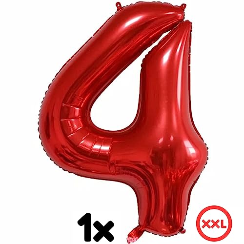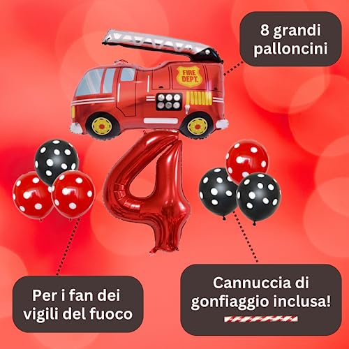 DIWULI Set di Palloncini dei Vigili del Fuoco, XXL Numero 4 Palloncino Rosso, 4° Compleanno