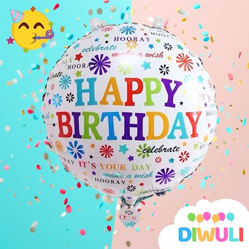 DIWULI Palloncino di Compleanno Happy Birthday, Palloncino in Foil, Palloncino di Compleanno, Palloncino in Foil Colorato per il Compleanno, Ragazza Ragazzo Bambino Compleanno, Festa, Decorazione