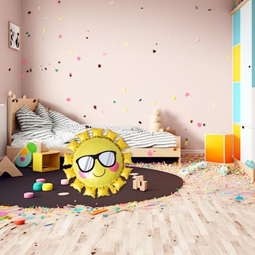 DIWULI palloncino Cool sun giallo, palloncino in foil sole divertente, palloncino compleanno bambini ragazzo ragazza, palloncino compleanno festa spiaggia festa tema, decorazione festa compleanno