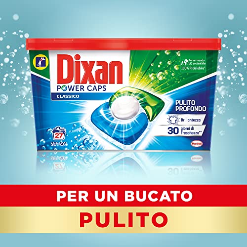 1 - Dixan Powercaps, Detersivo Lavatrice Predosato In Capsule, La formula di Dixan Powercaps detersivo per lavatrice con Tecnologia Pulito Profondo entra in profondità nelle fibre, rimuovendo anche le più piccole particelle di sporco. Confezione da 27 Lavaggi