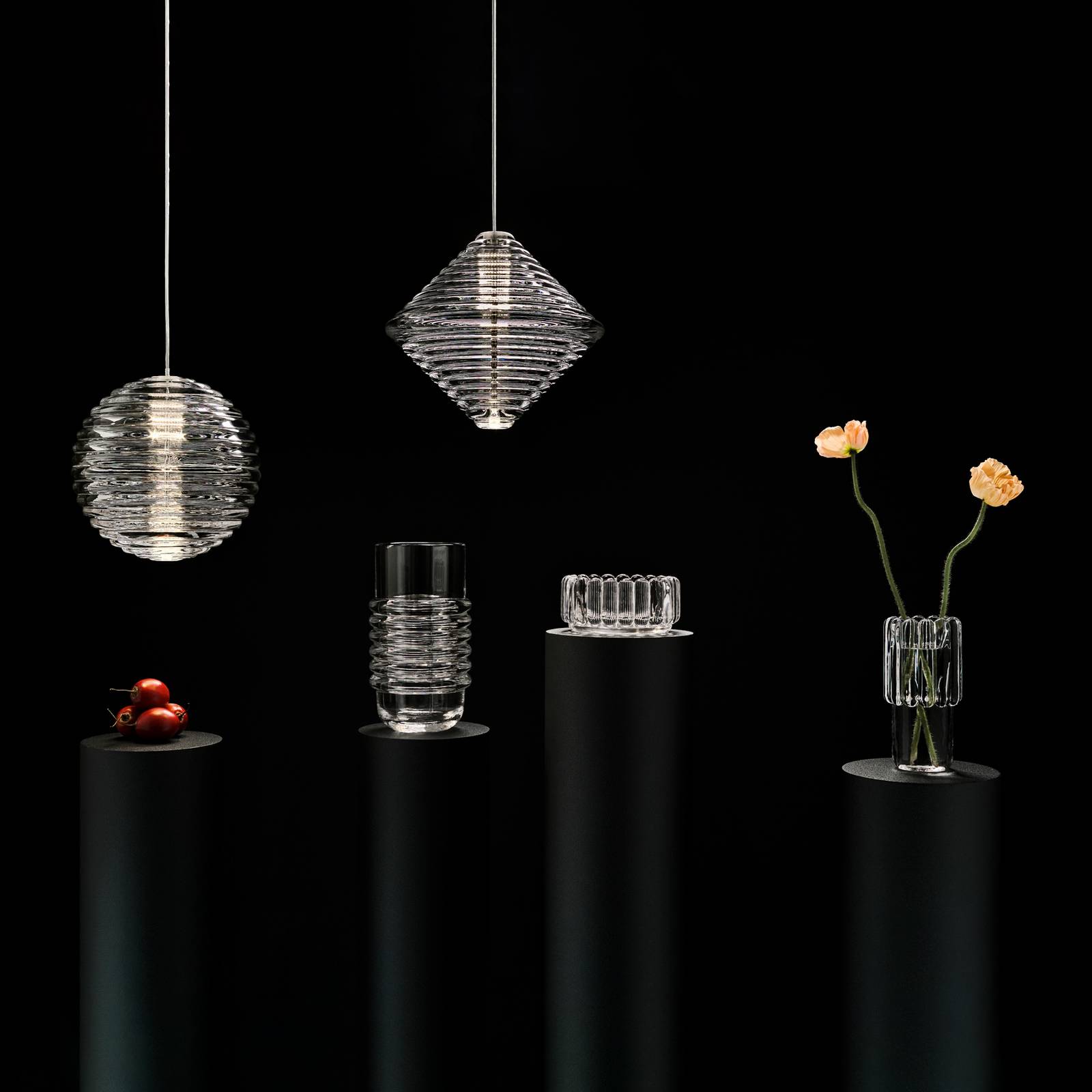 Lampada a sospensione LED Press Sphere con paralume in vetro scanalato di forma sferica Il paralume in vetro sferico della lampada a sospensione LED Press Sphere è un vero e proprio richiamo visivo. Realizzato con una grande sfera di vetro fusa a 1.200 gradi Celsius e poi pressata in uno stampo di ferro sotto tonnellate di pressione, questo paralume è stato creato con scanalature uniformi che proiettano motivi lineari e a strisce nell'ambiente circostante mentre la luce viene emessa. Una forma geometrica semplice con una silhouette sobria e un potere ottico sorprendente. La serie di lampade Press di Tom Dixon incarna l'estetica più pura del materiale vetro. Press Sphere è dotata di un cavo nero rivestito in tessuto. - dimmerabile esternamente