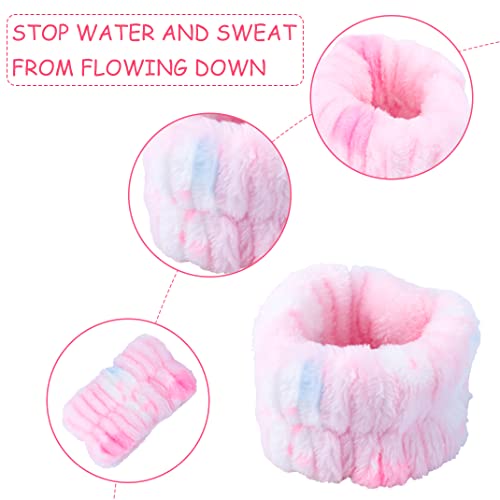 Forte assorbimento d'acqua: i braccialetti e le fasce in microfibra sono carini e pratici, con un forte assorbimento d'acqua. Aiuta a prevenire che l'acqua scorra lungo le braccia quando ti lavi il viso ed è un must per gli amanti della cura della pelle.