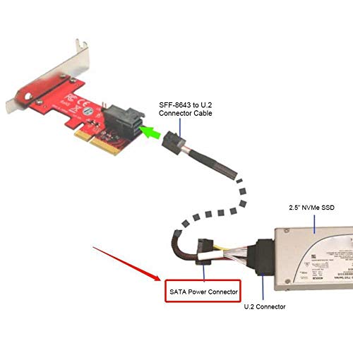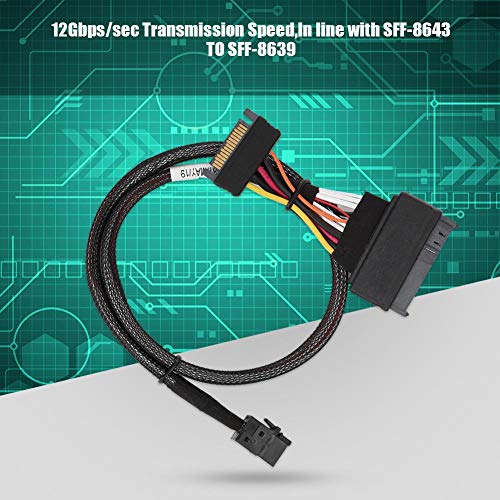 Diyeeni 50CM HD Mini-SAS (SFF-8643) a U.2 (SFF-8639) Cavo SSD NVMe, U.2 NVMe PCIe a Mini SAS (SFF-8643) Connettore con Alimentazione SATA per U.2 SSD