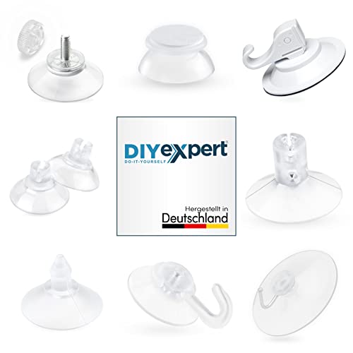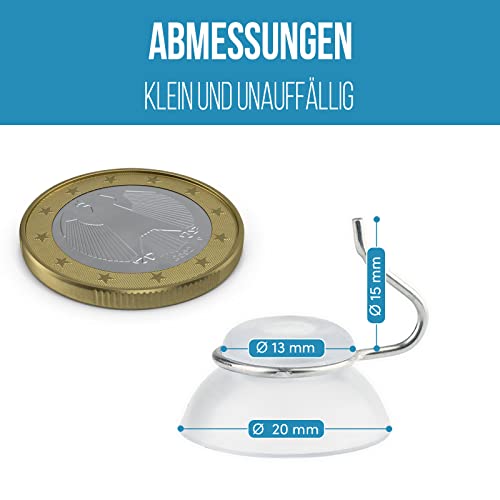 DIYexpert 10 ganci a ventosa Ø 20 mm - come gancio da parete con ventosa e gancio in metallo - ideale per bagno, cucina - su piastrelle di vetro a specchio