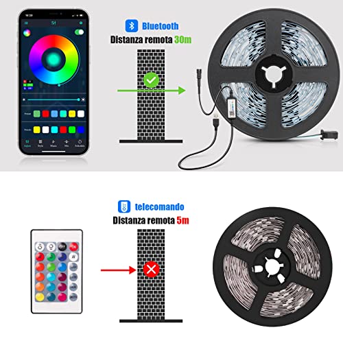 Diyife LED Retroilluminazione TV, [Illuminazione Colorata] Retroilluminazione 5m TV, LED Striscia TV, Colorati Dimmerabile con Controller Bluetooth Musica Sincronizza la Adatto per interno,esterno