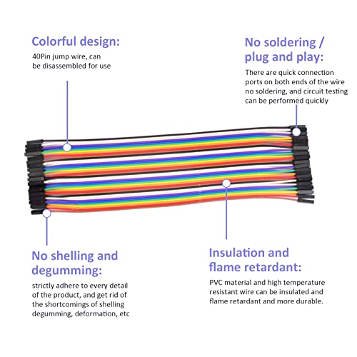 Contenuto della confezione: 2 cavi di collegamento a 40 pin da femmina a femmina, 2 cavi di collegamento a 40 pin da maschio a femmina, 2 cavi di collegamento a 40 pin da maschio a maschio (totale 240 pezzi)