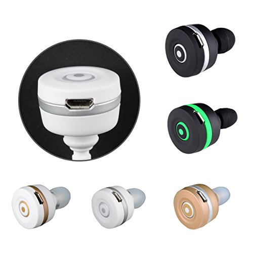 DizauL Mini In Ear senza fili Bluetooth Stereo Cuffie Wireless Headset auricolare con microfono per iPhone 6 5S 5C 5 4S 4 iPad 5 4 3 2 Mini iPod Samsung Galaxy S6, S5 S4 S3 S2 S1 Nota 3 Nota 2 Nexus 7 e la maggior parte dei dispositivi Bluetooth, argento + bianco