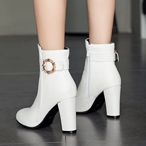 Djiess Stivaletti da Donna Stivaletti Eleganti e Comodi con Tacco Largo Primavera Autunno Tacchi Alti con Punta Tonda