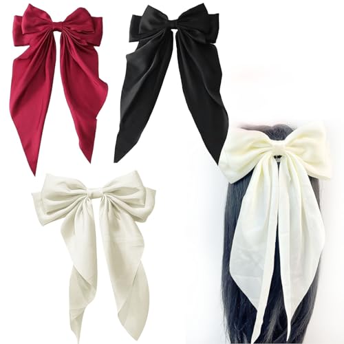 DKDDSSS 2 Pezzi Fermagli Per Capelli con Fiocco Grande, Mollette Per Capelli Donna Con Fiocco In Raso, Tinta Unita Francese Fermaglio Semplice Accessor, Donna E Ragazza Compleanni, Feste, Matrimoni