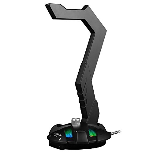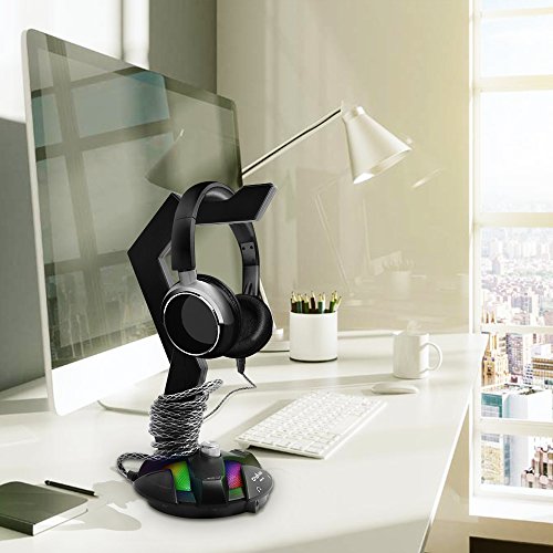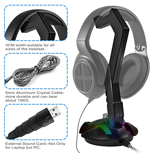 DLAND Gaming Headset Stand con USB Port-Mounted Display supporto della cremagliera cuffie gancio per Gamer (nero) - 7.1 scheda audio esterna, RGB Luce, One Key EQ Switch.