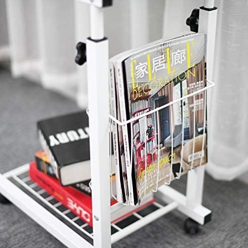 DlandHome Carrello da letto regolabile in altezza 56 ~ 76 cm punta del divano piccolo tavolino con ruote tavolino a forma di U con cestino supporto per computer portatile per la lettura, bianco