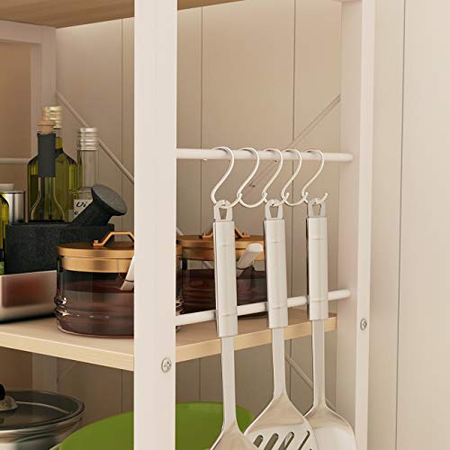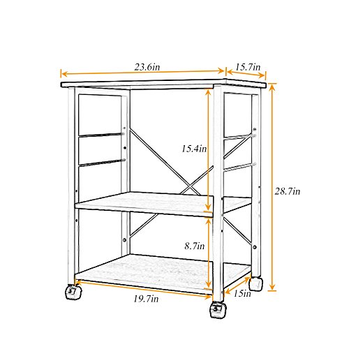 【Spazio salvaspazio】: set con 3 ripiani è possibile conservare tostapane, spezie, piatti e qualsiasi altra cosa che si desidera. Il robusto pannello superiore è in grado di conservare e contenere un forno a microonde e altri elettrodomestici da cucina.
